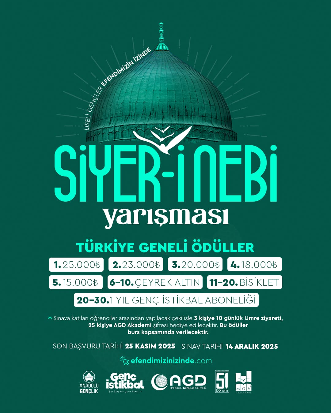 Kaybedeni olmayan, kazanımları ömür boyu hayatımızı şekillendirecek Siyer-i Nebi Yarışmasına efendimizinizinde.com adresinden kayıt olabilirsiniz.